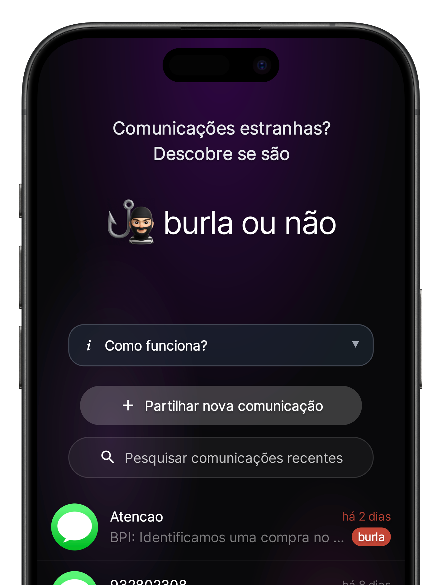 É simples: partilha comunicações suspeitas, como chamadas, mensagens ou imagens, e ajuda outros a detetar burlas.